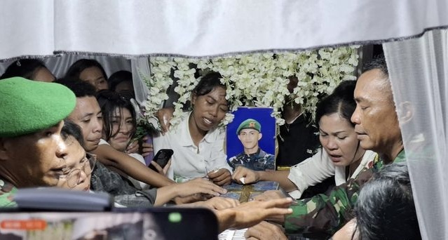 Suasana haru menyelimuti rumah duka ketika ibunda Prada Lucky, Sepriana Paulina Mirpey, menyampaikan permohonannya kepada Pangdam.