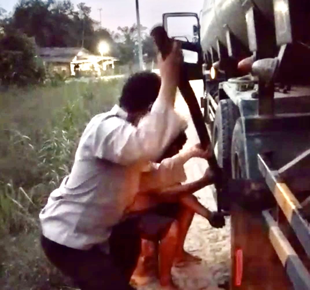 Setelah berkomunikasi dengan sang sopir, Bhabinkamtibmas yang dikenal dekat dengan warga itu mengetahui bahwa truk tersebut mengalami pecah ban, yang membuat kendaraan tidak bisa melanjutkan perjalanan.