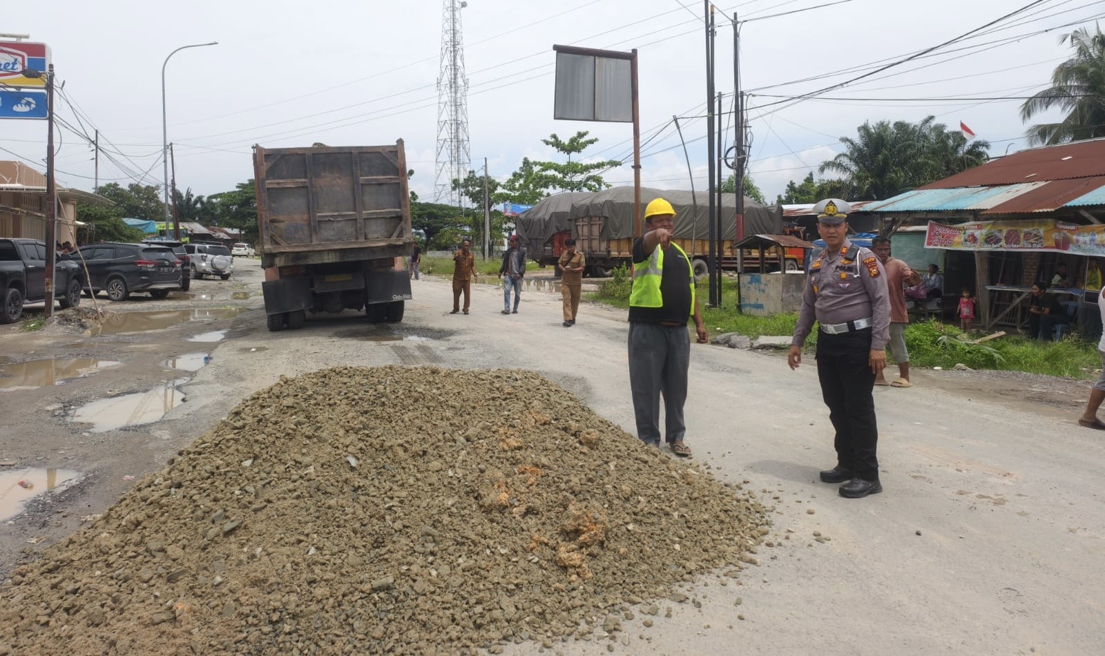 Situasi kian mereda ketika sejumlah alat berat dan material sertu didatangkan ke lokasi.