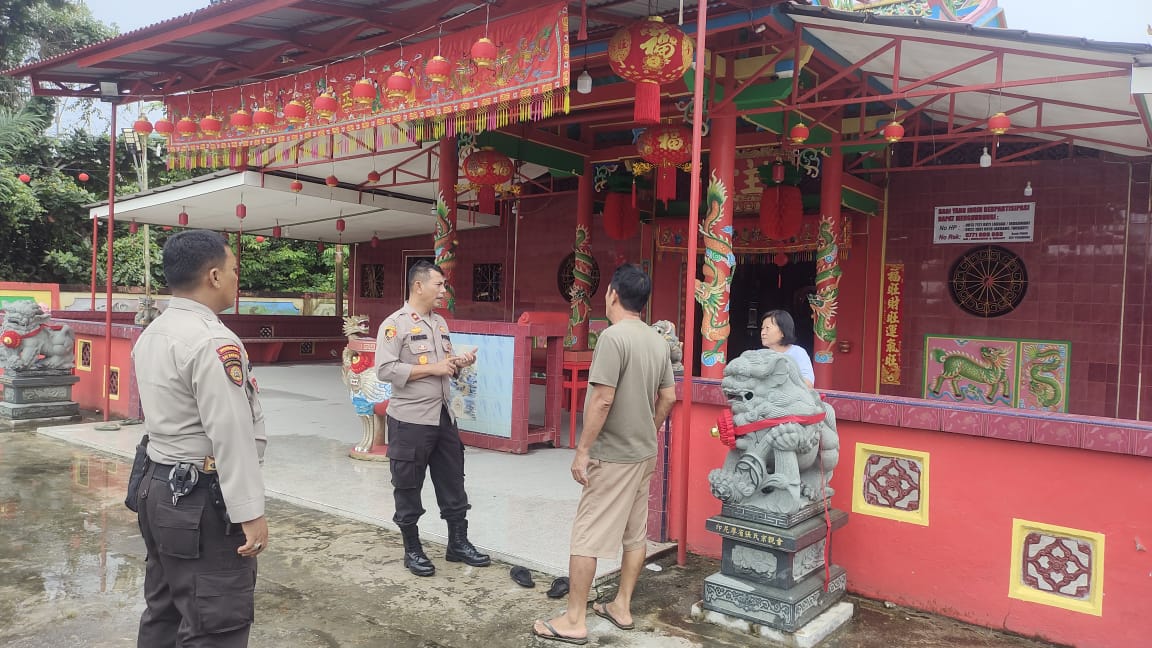 Kapolsek Tualang Kompol Hendrix Saat Meninjau Salah Satu Kelenteng Jelang Perayaan Imlek (ist)