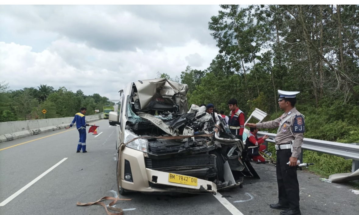PEKANBARU.– Kecelakaan lalu lintas ganda terjadi di Km 20/900 Jalur B, di ruas Tol Permai, wilayah hukum Polres Siak, Selasa (19/11/2024) pukul 11.50 WIB. Peristiwa ini melibatkan kendaraan Hino Truck BA 8103 AU bermuatan besi dan Toyota Hiace BM 7842 DU milik sebuah perusahaan oto travel.