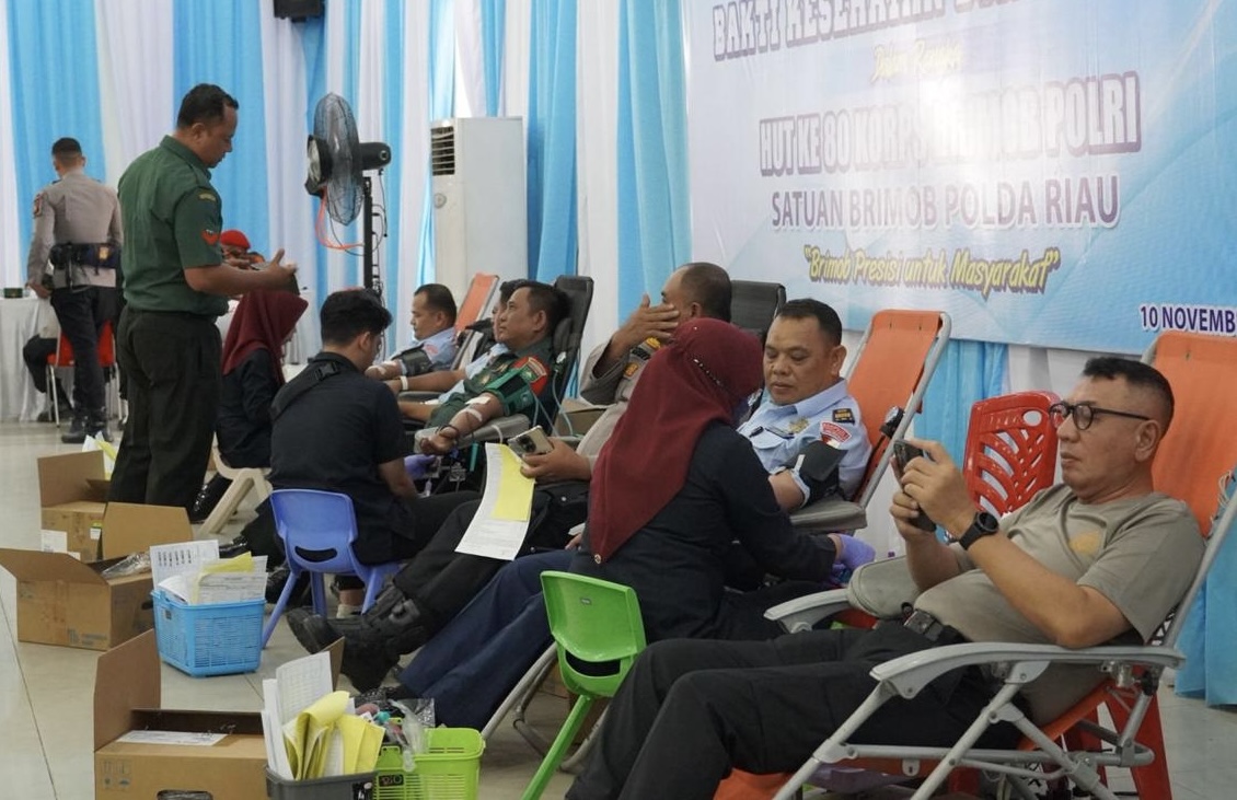 Kegiatan donor darah dimulai sejak pukul 07.00 WIB, diikuti oleh personel Brimob Polda Riau, TNI, instansi lainnya serta masyarakat sekitar.
