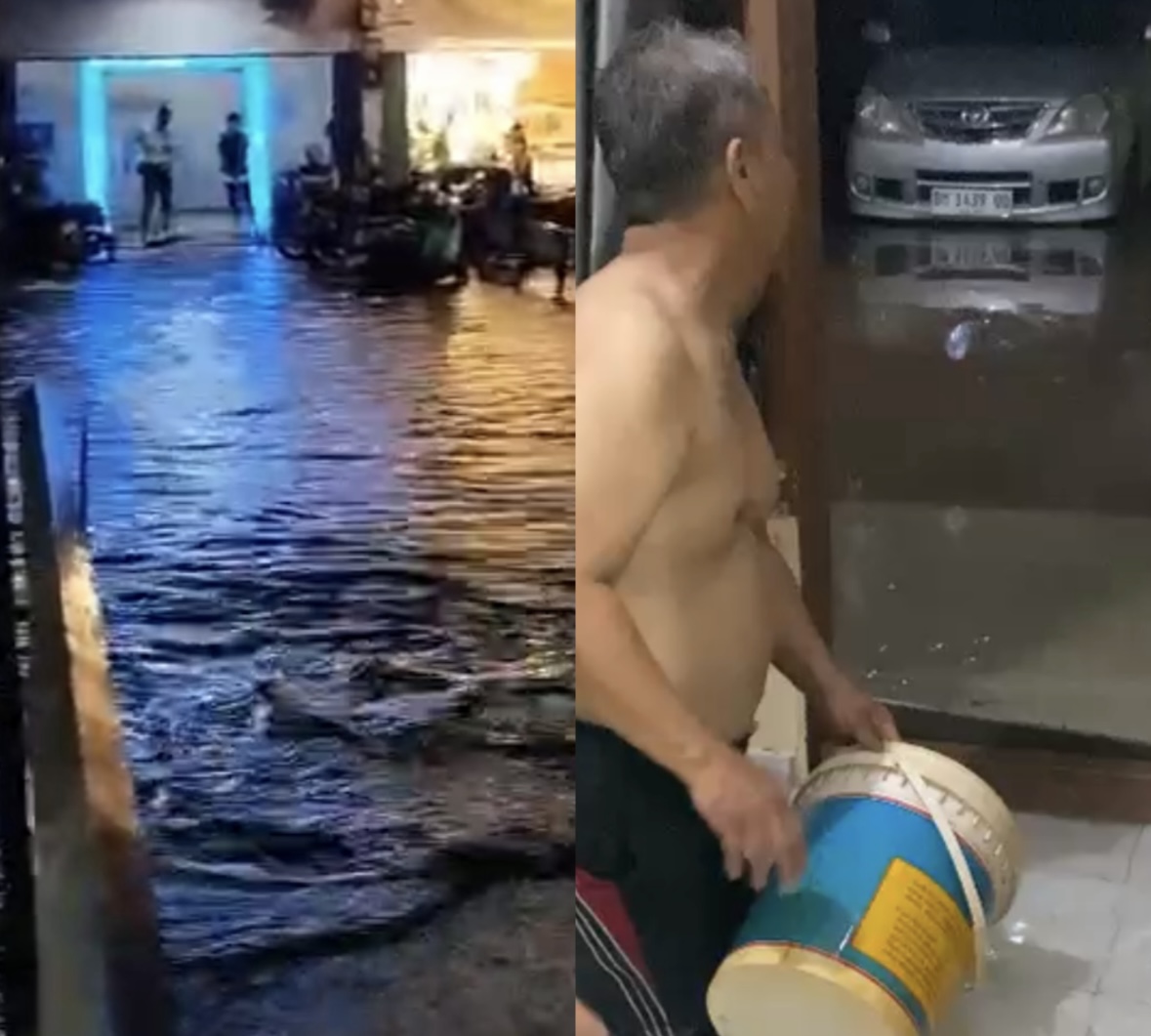 Di sana, air bahkan masuk ke dalam rumah warga. “Air cepat sekali naik, hujannya deras dan lama. Dalam waktu satu jam, lantai rumah sudah terendam,” ungkap Yurnalis, warga Jalan Paus, sambil menimba air dari ruang tamunya yang basah kuyup.