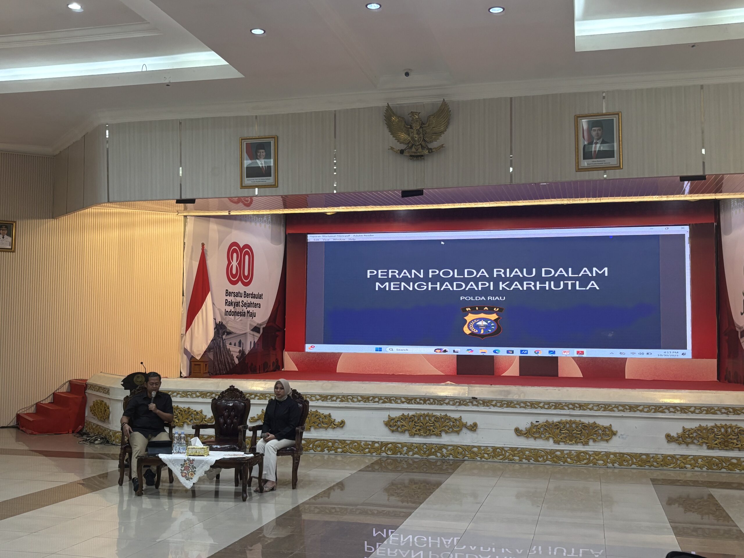 PEKANBARU — Direktur Reserse Kriminal Umum (Dirreskrimum) Polda Riau, Kombes Pol Asep Darmawan, mewakili Kapolda Riau Irjen Pol Herry Heryawan memaparkan peran kepolisian dalam menghadapi ancaman kebakaran hutan dan lahan (karhutla).