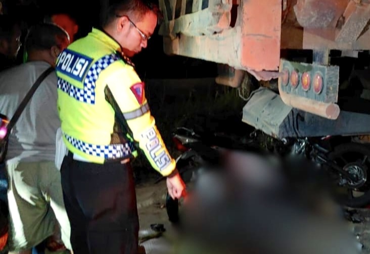 Menurut keterangan polisi, satu unit dump truk sedang berhenti di sisi jalan menghadap timur. Sepeda motor datang dari arah barat menuju timur sebelum akhirnya menabrak bagian belakang truk.