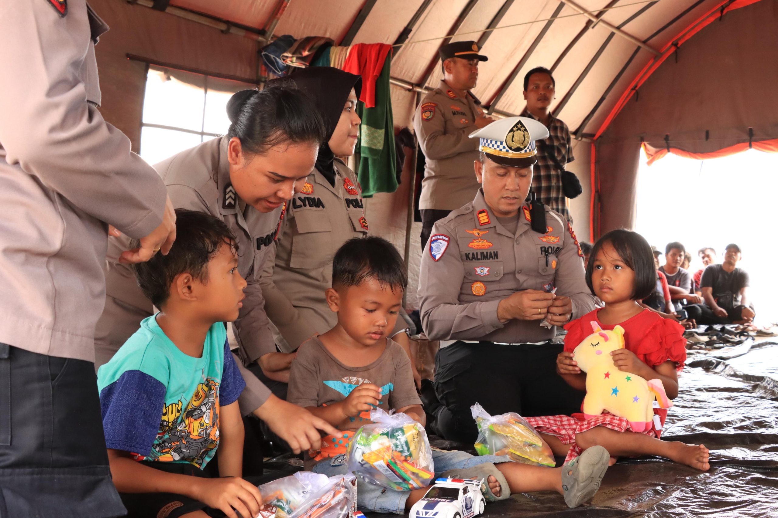 SIAK – Tenda pengungsian yang semula hening dan penuh kecemasan, perlahan terdengar tawa kecil anak-anak dan wajah-wajah lega dari para ibu.