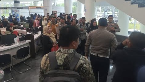 Antrian panjang terlihat di MPP, sehingga petugas kepolisian ikut membantu menertibkan warga yang melakukan pengurusan.