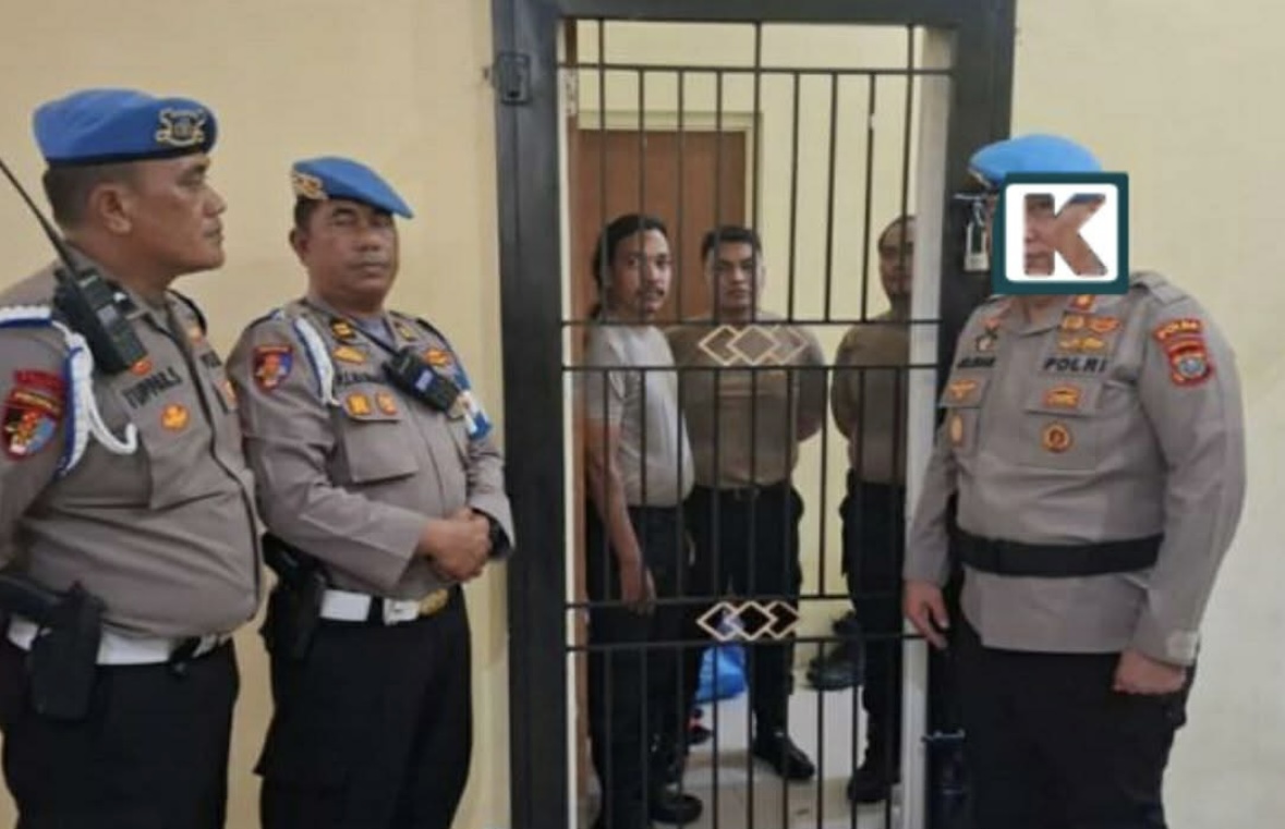 Dari foto yang diterima, terlihat 3 dari 4 berdiri dibalik jeruji besi Bid Propam.