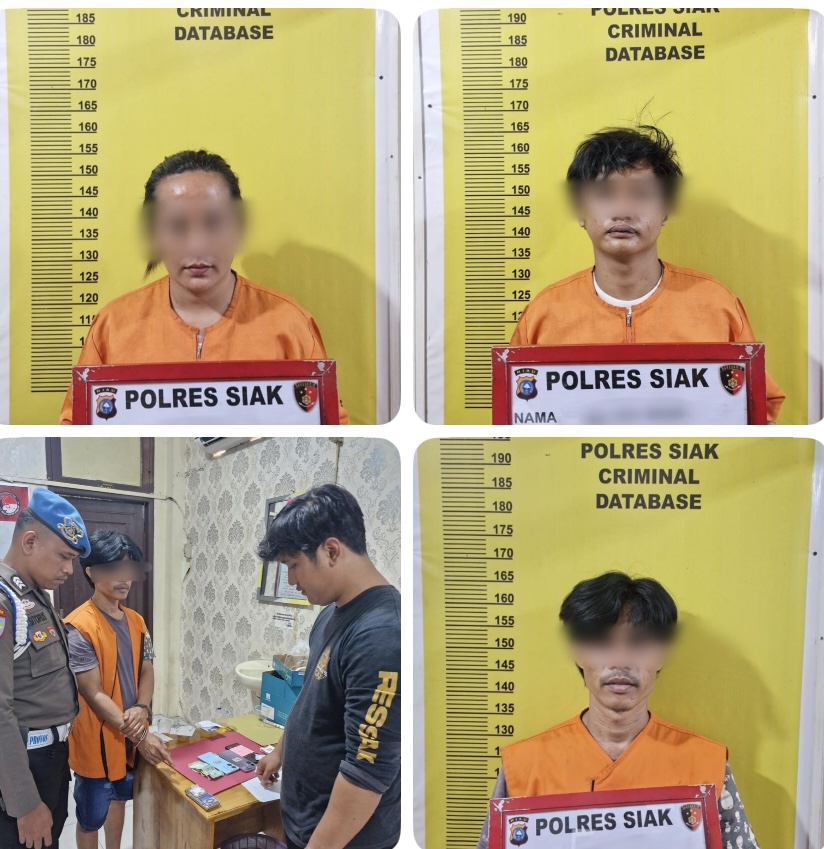 SIAK.~ Polres Siak melalui Satuan Reserse Narkoba meringkus tiga orang pelaku penyalahgunaan narkotika jenis sabu di Jalan Sri Paduka, Kampung Tualang, Kecamatan Tualang, Kabupaten Siak, Minggu (27/7) malam sekira pukul 22:30 Wib.
