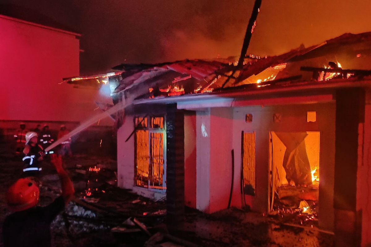 Api diduga bermula dari area dapur dan dengan cepat menjalar ke bagian rumah lainnya yang berada di kiri dan kanan.