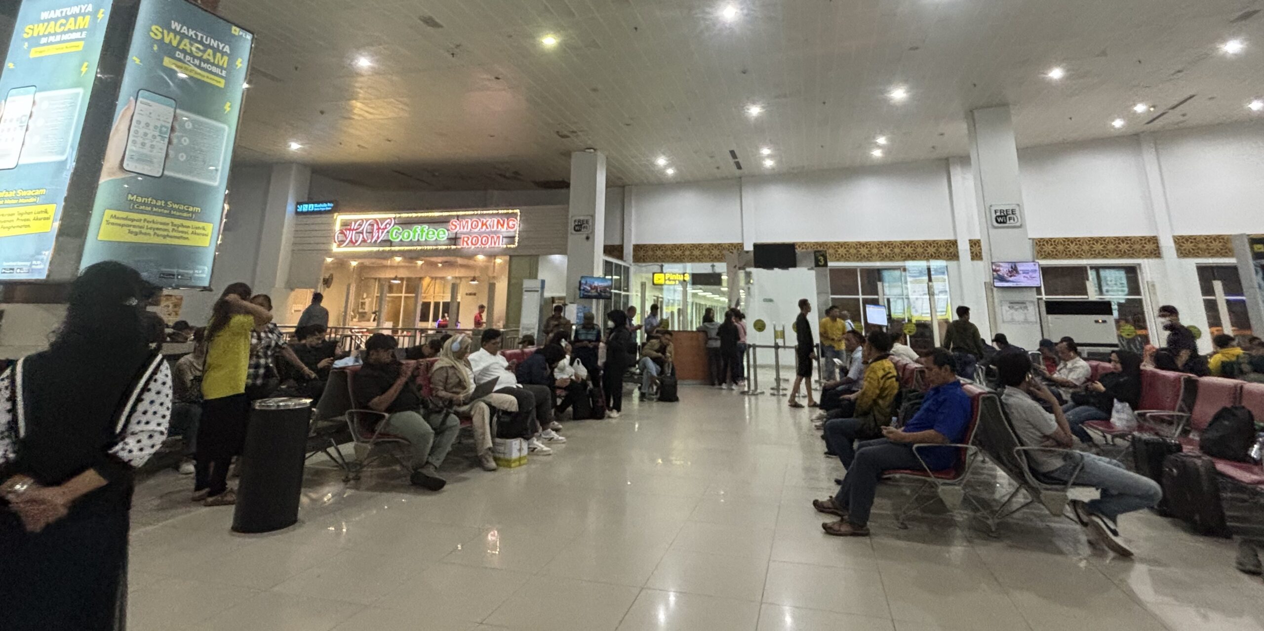 Para calon penumpang yang telah memasuki area boarding sejak pukul 15.50 WIB mengaku terus menunggu tanpa kejelasan hingga pukul 19.15 WIB.