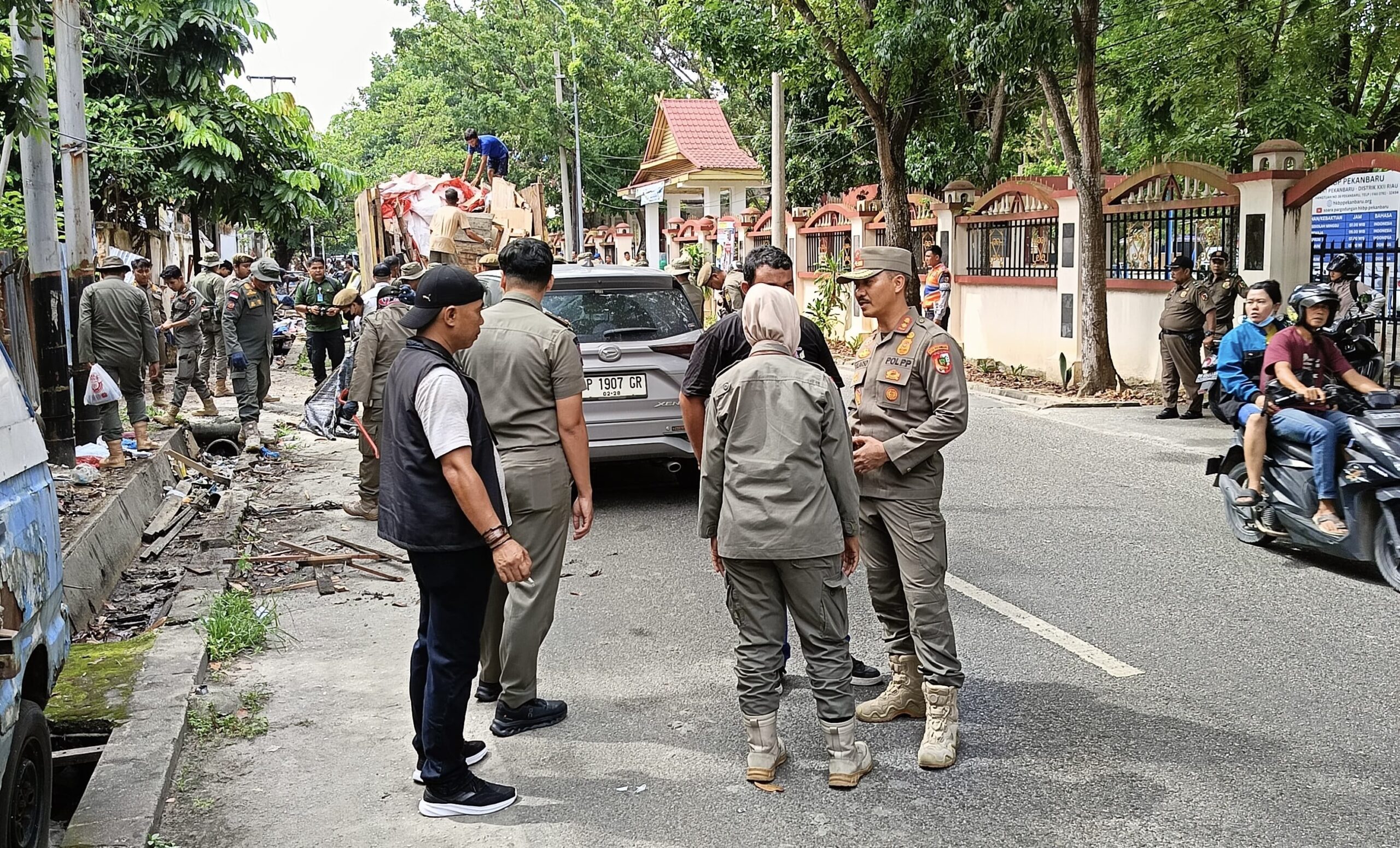 Operasi tersebut terpantau berlangsung hingga sore hari dengan pengamanan berlanjut oleh pleton jaga Satpol PP Kota Pekanbaru. Situasi di lapangan berjalan aman dan kondusif.