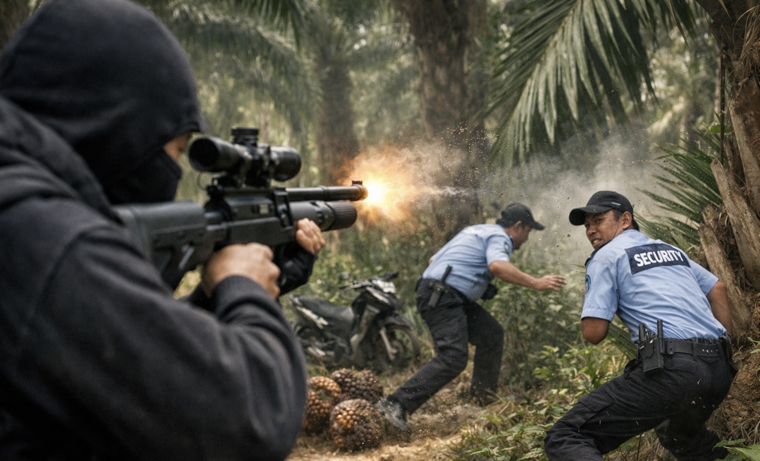 Dua petugas keamanan perusahaan, HD dan NL, nyaris menjadi korban penembakan saat menjalankan patroli rutin di salah satu afdeling kebun.