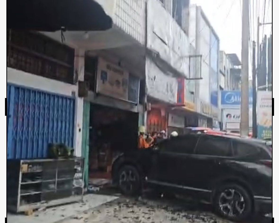 PEKANBARU – Asap tebal terlihat membumbung tinggi dari sebuah ruko di Jalan Tuanku Tambusai, tepatnya di Toko Max Computer, yang dilalap si jago merah sekira pukul 04.00 WIB, Minggu (3/8).