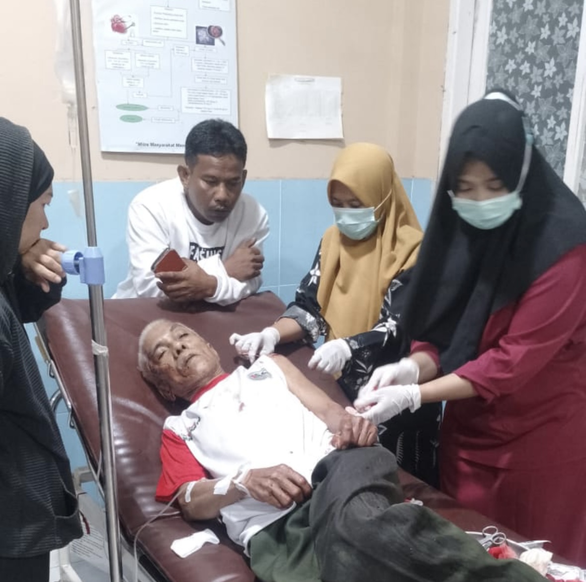 Melihat kondisi korban yang bersimbah darah, warga segera mengevakuasi Edy ke Puskesmas Sungai Apit untuk mendapatkan perawatan medis.